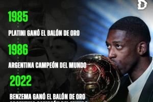 阿根廷媒体la derecha diario晒照,表示之前法国球员在世界杯前赢得金球后,阿根廷国家队世界杯夺冠: