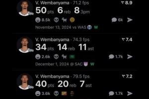 50分、40+20+7、揭幕战40+15!美媒晒文班离谱数据:他才21岁